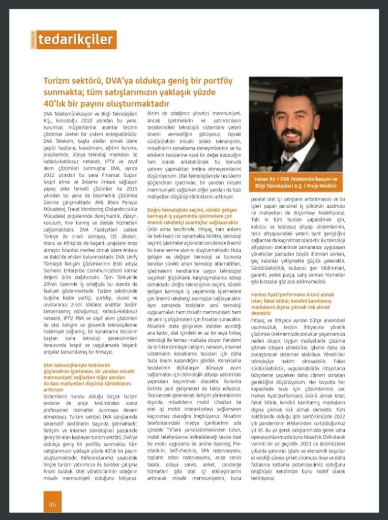 Proje Müdürümüz Hakan KIR'ın Turizm Proje Dergisi “Turizm Tedarikçileri 2024” Özel Sayısı Röportajı